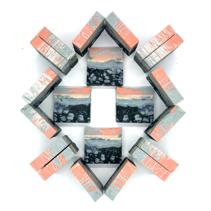 Inspired by the pure excitement of exploring Iceland, Diamond Beach captures the breathtaking beauty of glistening icebergs resting on dark volcanic sand. These natural gems, in varying shapes and sizes, shine like diamonds—giving the beach its evocative name and inspiring this unique soap.