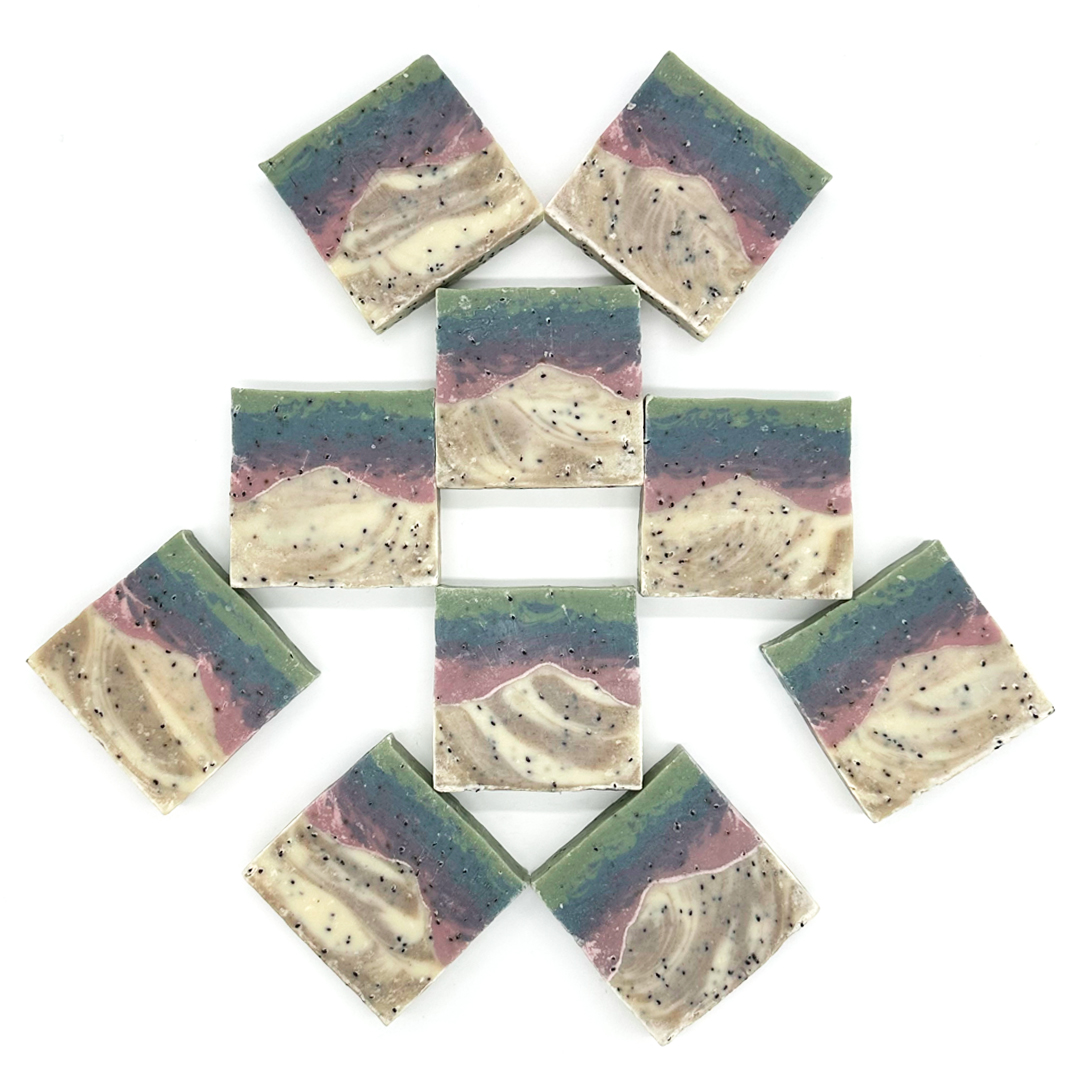 Finished with an earthy, grounding aroma of essentail oils of neroli, lavender, patchouli, and clary sage, this bar turns an everyday cleanse into a refreshing, skin-loving ritual. It’s your little mountain escape—one scrub at a time.